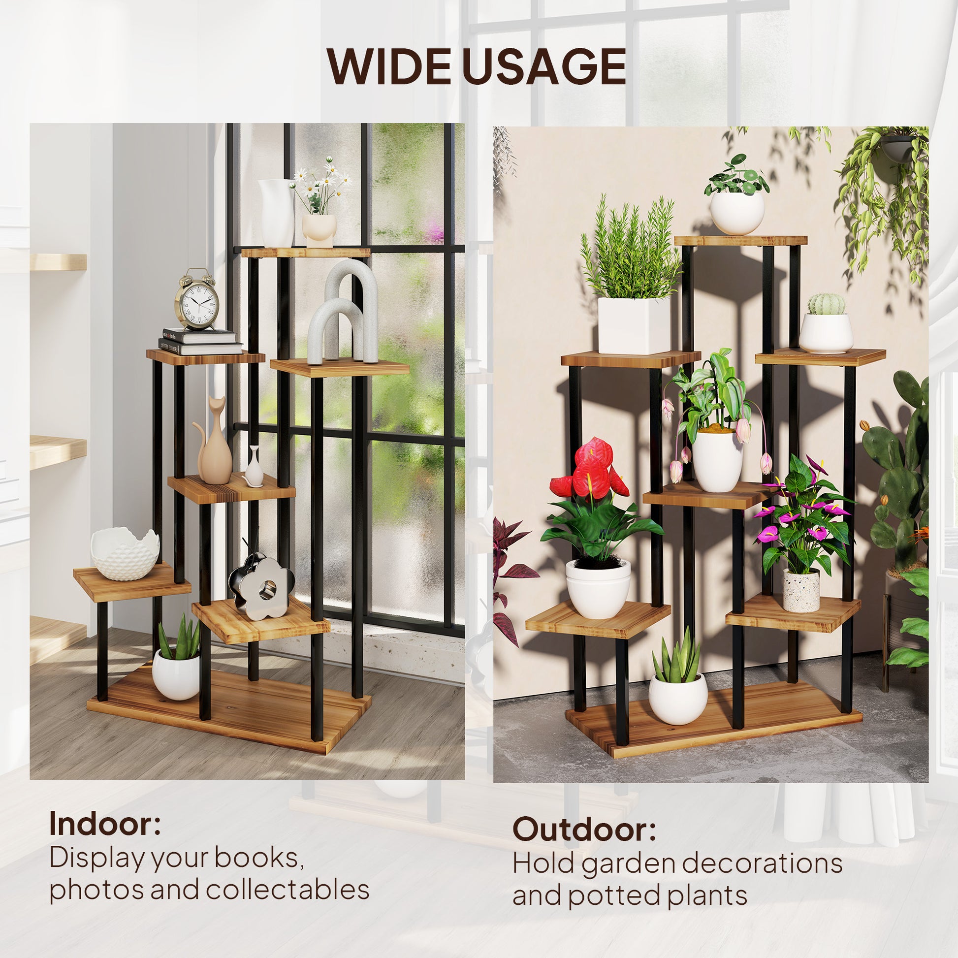 Outsunny 7 Tier Plant Stand, Tall Steel Wood Plant Shelf, Carbonised Finish
