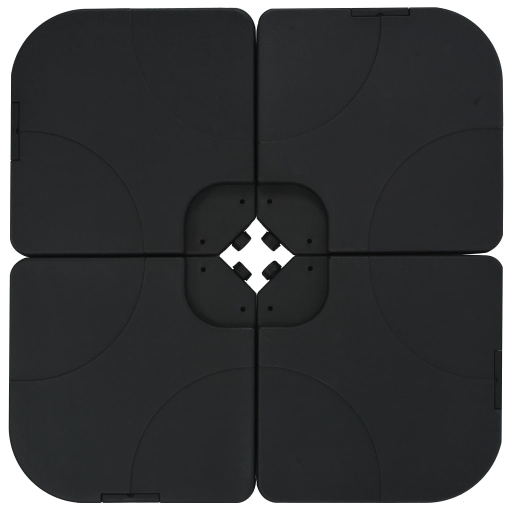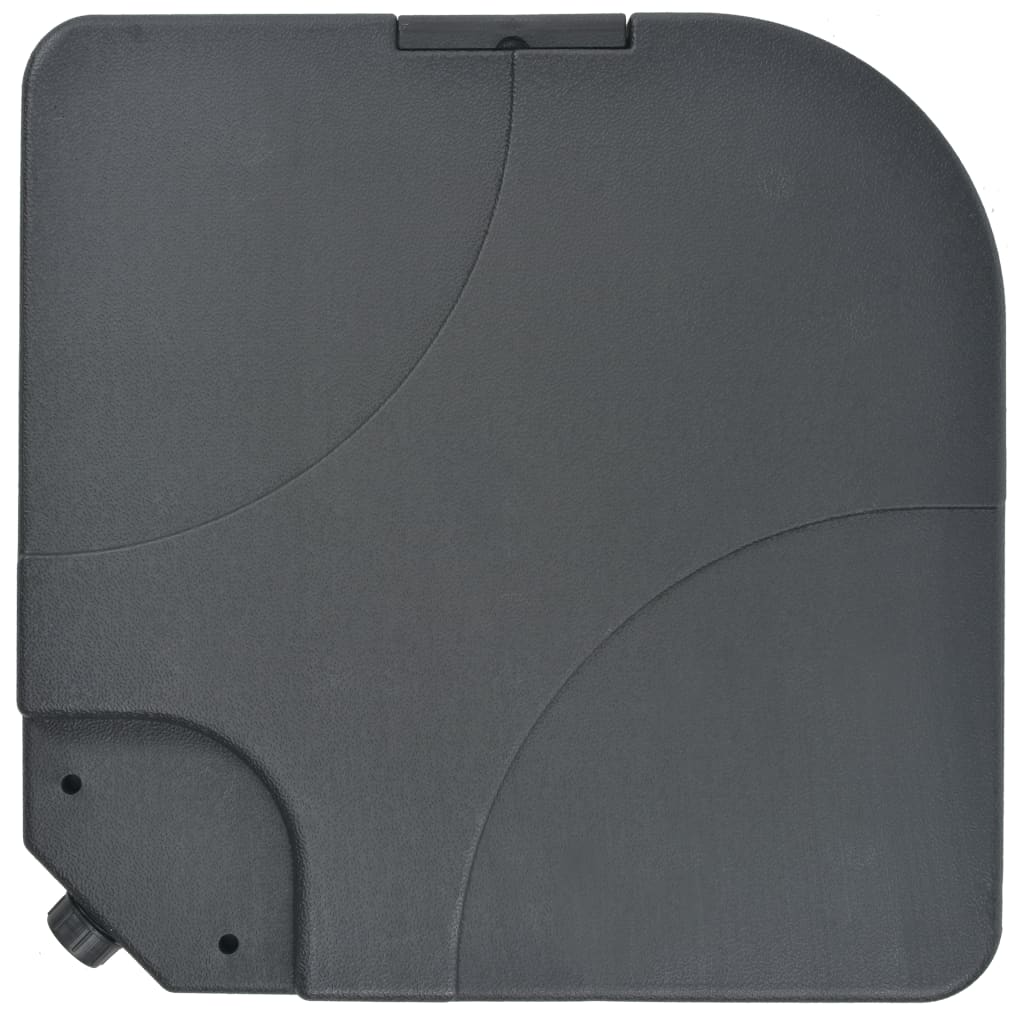 This parasol base consists of four separate parts that are designed to be filled with water or sand for ballast. It serves as a firm and sturdy base for holding your parasol. The parasol stand can be filled with 60 liters of water or 80 kg of sand. It is ideal for steadying all parasols with a cross base. Without the filler, the parasol base is very light in weight, which makes it easy to carry and store thanks to the handle design. With our parasol base, your parasol will stay put!